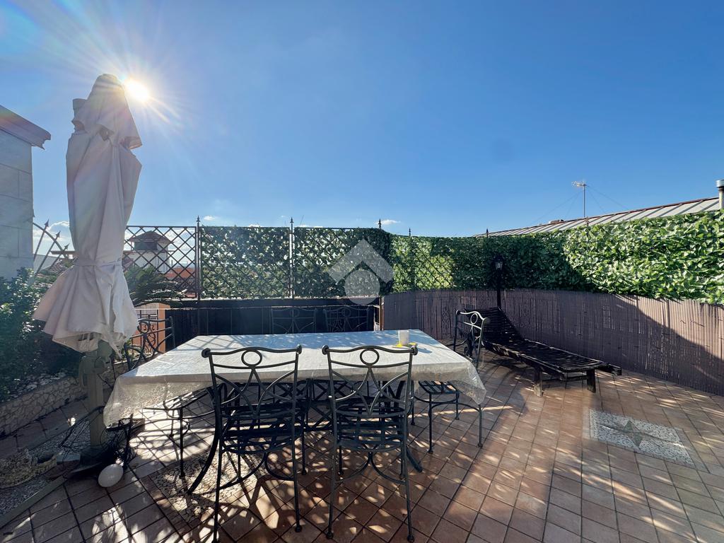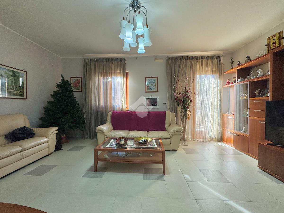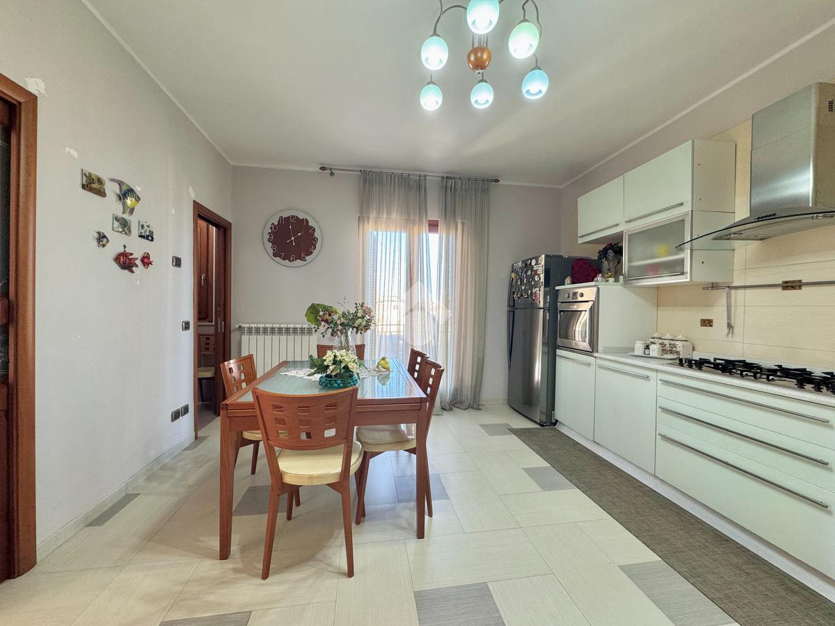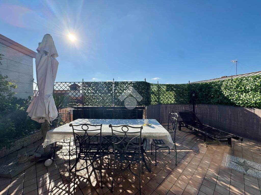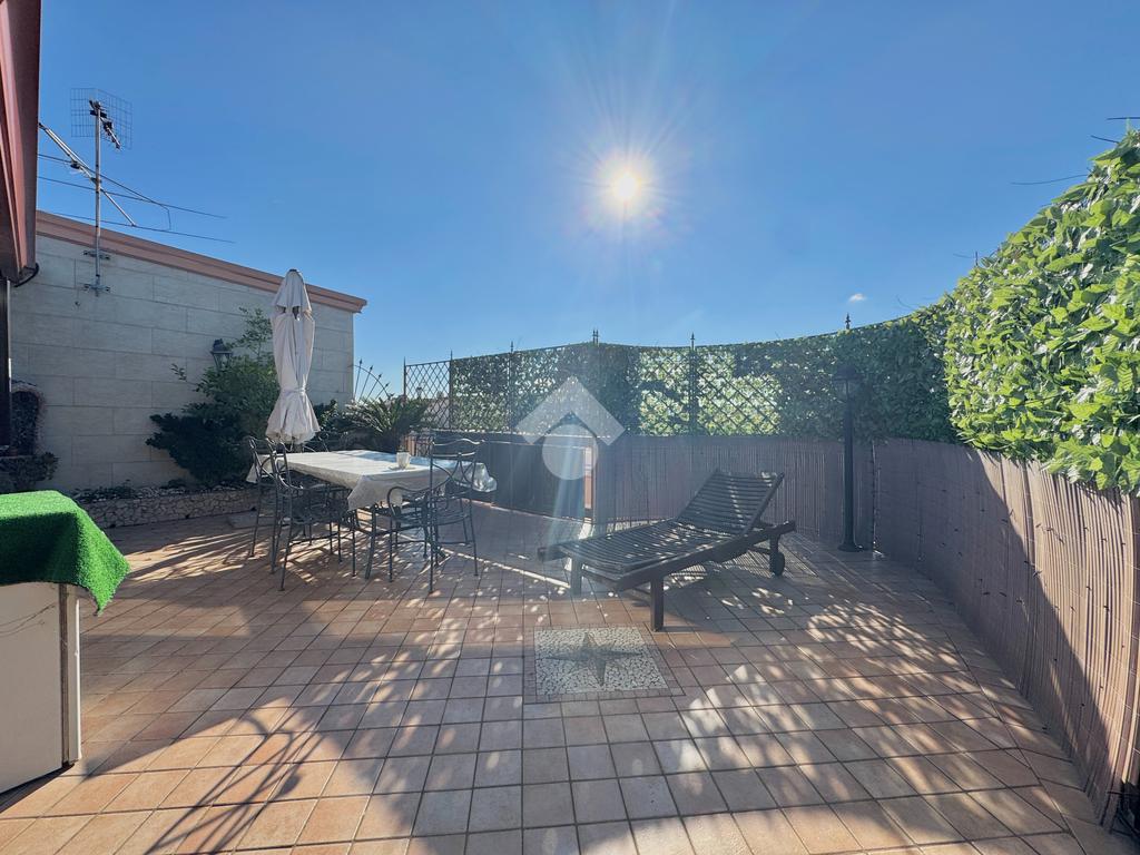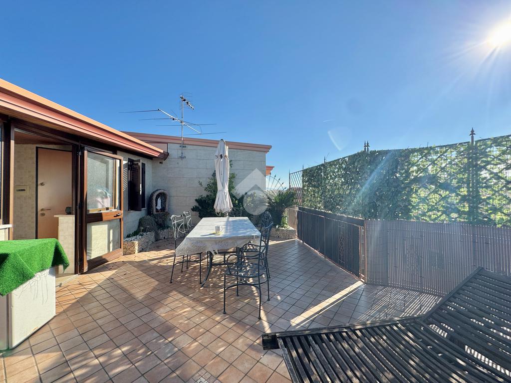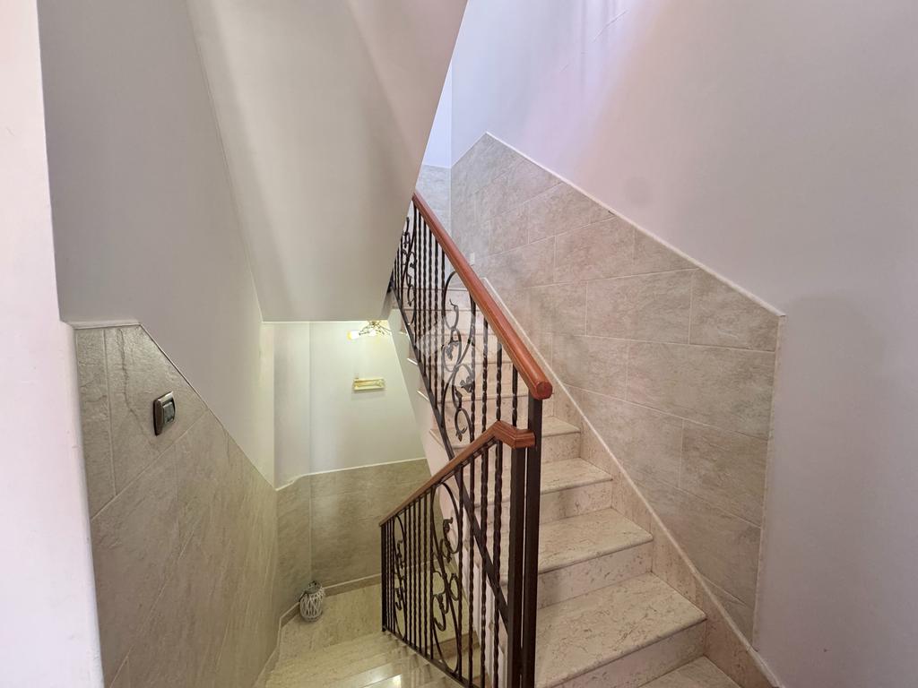 Varcando il portoncino d’ingresso vi è un vano scala in marmo che conduce al primo piano che si compone dall’ampio soggiorno separato dalla cucina abitabile e un primo accessorio; proseguendo per il vano scala vi è la zona notte composta da una camera matrimoniale, una cameretta con cabina armadio, un’altra cameretta e un bagno; proseguendo vi è un ampio terrazzo di copertura attrezzato, una vera e propria area relax. Completa un box auto doppio nel tutti i giorni previa telefonata.