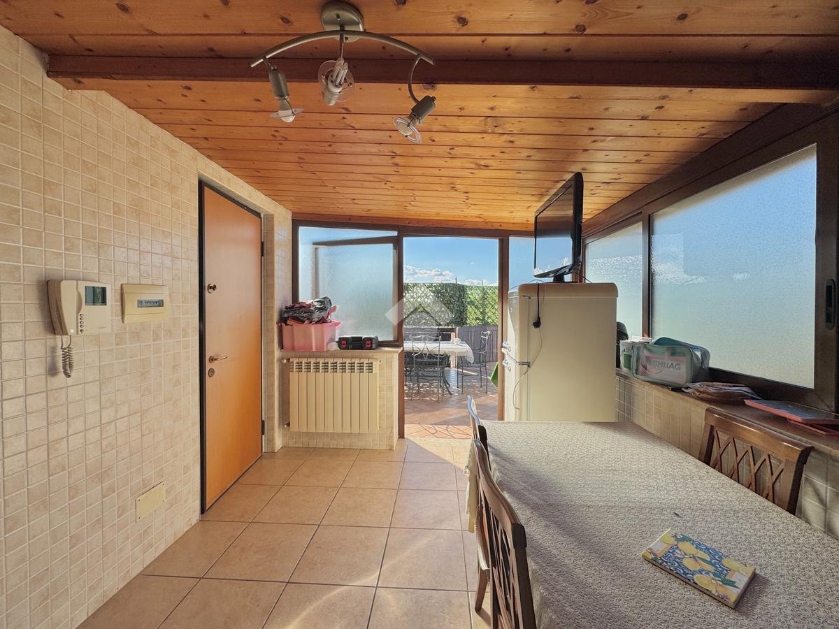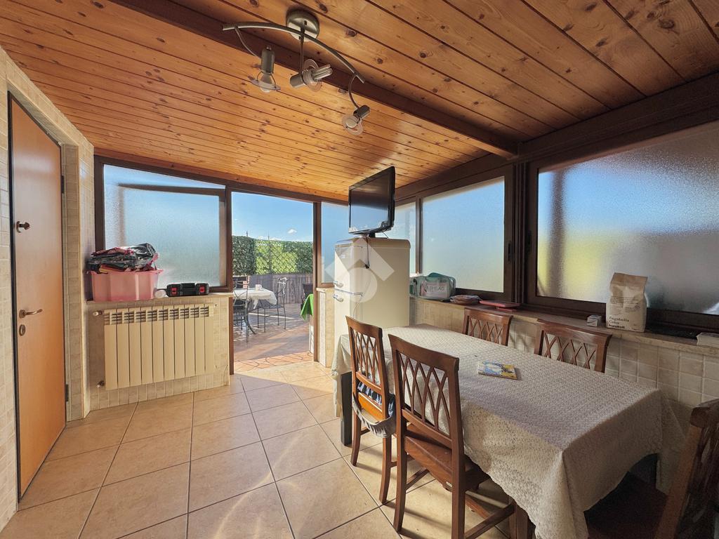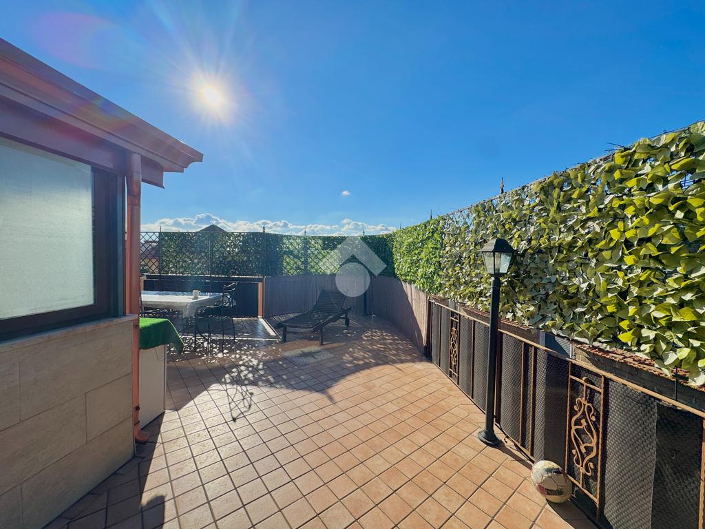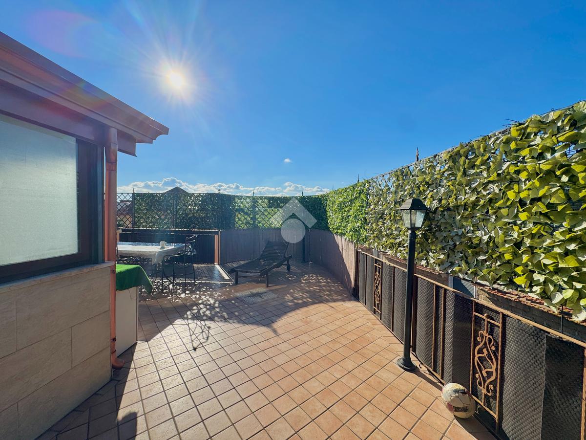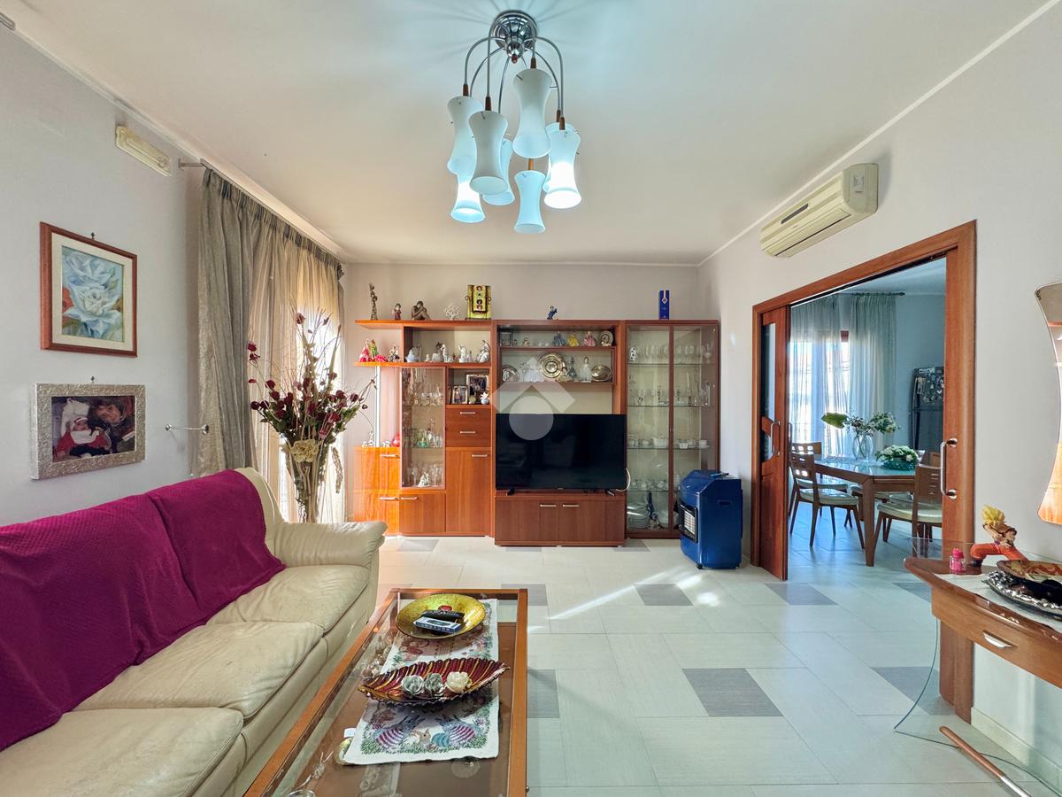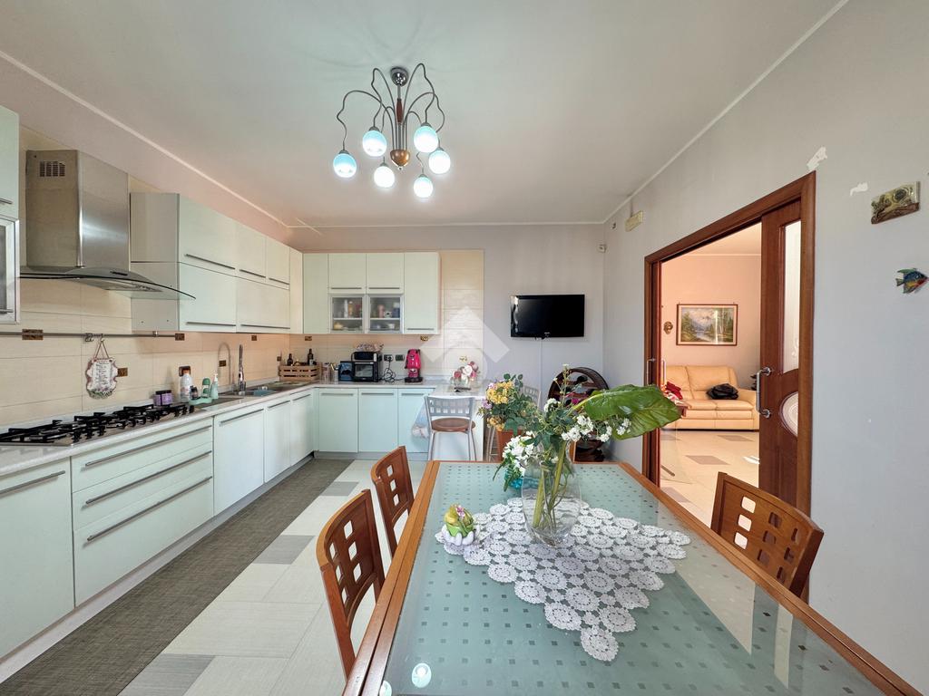 Varcando il portoncino d’ingresso vi è un vano scala in marmo che conduce al primo piano che si compone dall’ampio soggiorno separato dalla cucina abitabile e un primo accessorio; proseguendo per il vano scala vi è la zona notte composta da una camera matrimoniale, una cameretta con cabina armadio, un’altra cameretta e un bagno; proseguendo vi è un ampio terrazzo di copertura attrezzato, una vera e propria area relax. Completa un box auto doppio nel tutti i giorni previa telefonata.