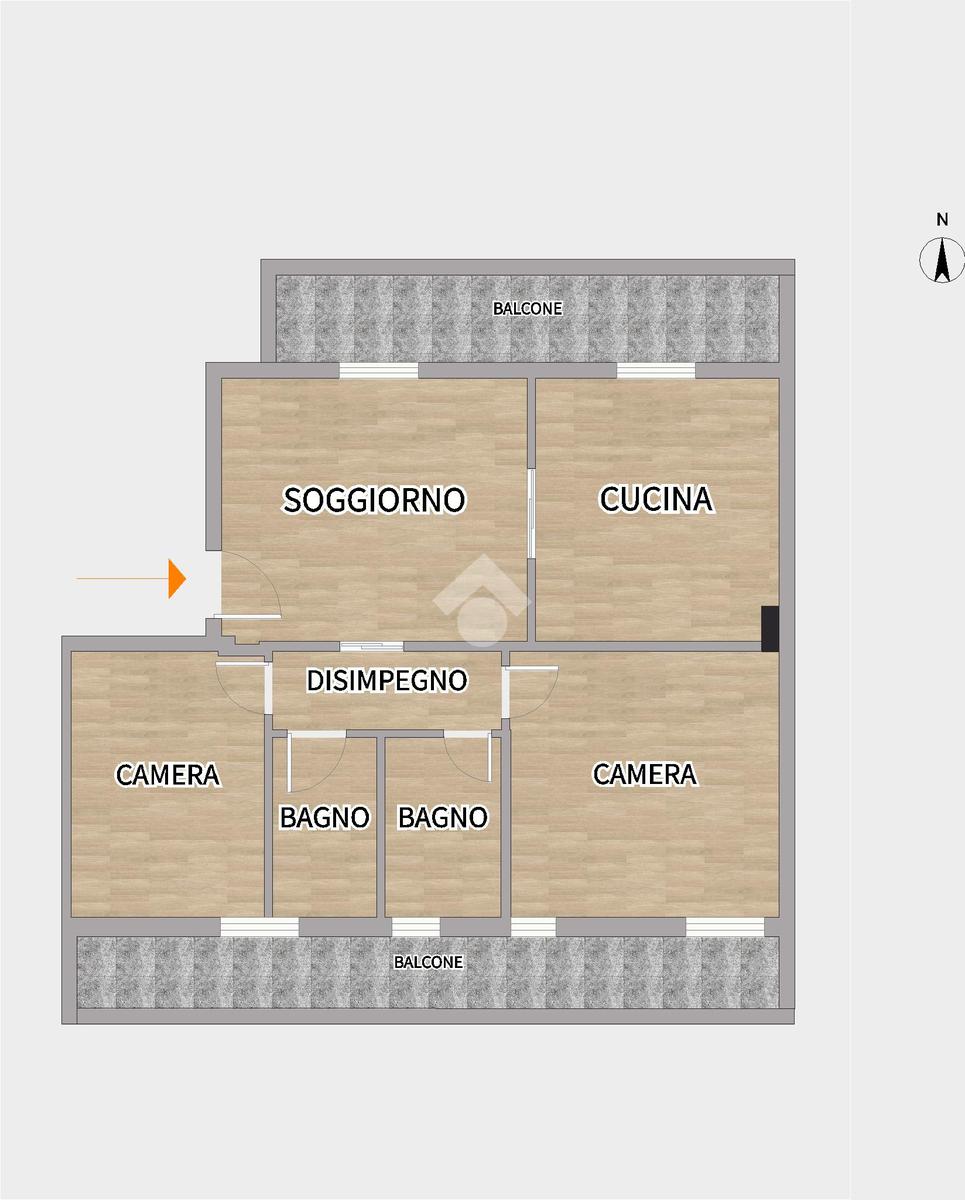 L'immobile, ubicato al primo piano con ascensore, si compone di spazi interni ampi e ben distribuiti: L'ingresso da nel soggiorno separato dalla cucina abitabile,proseguendo per il disimpegno, ci immettiamo nella zona notte, composta da una camera matrimoniale, una camerra e due bagni entrambi finestrati. Gode di una doppia esposizione.